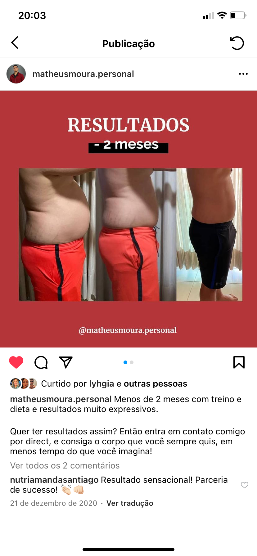 Avaliação física por fotos e medidas de circunferência e peso, para avaliar evolução.