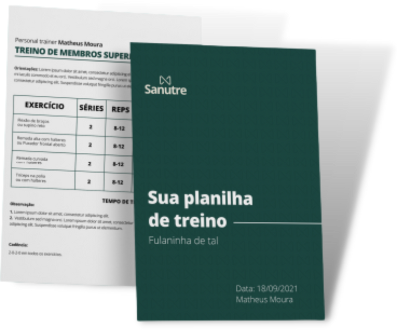 Planilha personalizada, orientações detalhadas, imagens e videos de cada exercício.